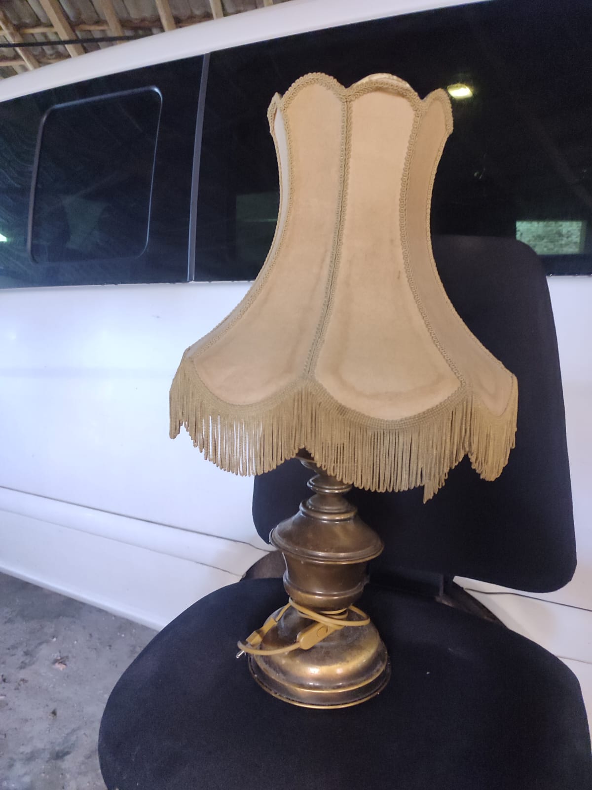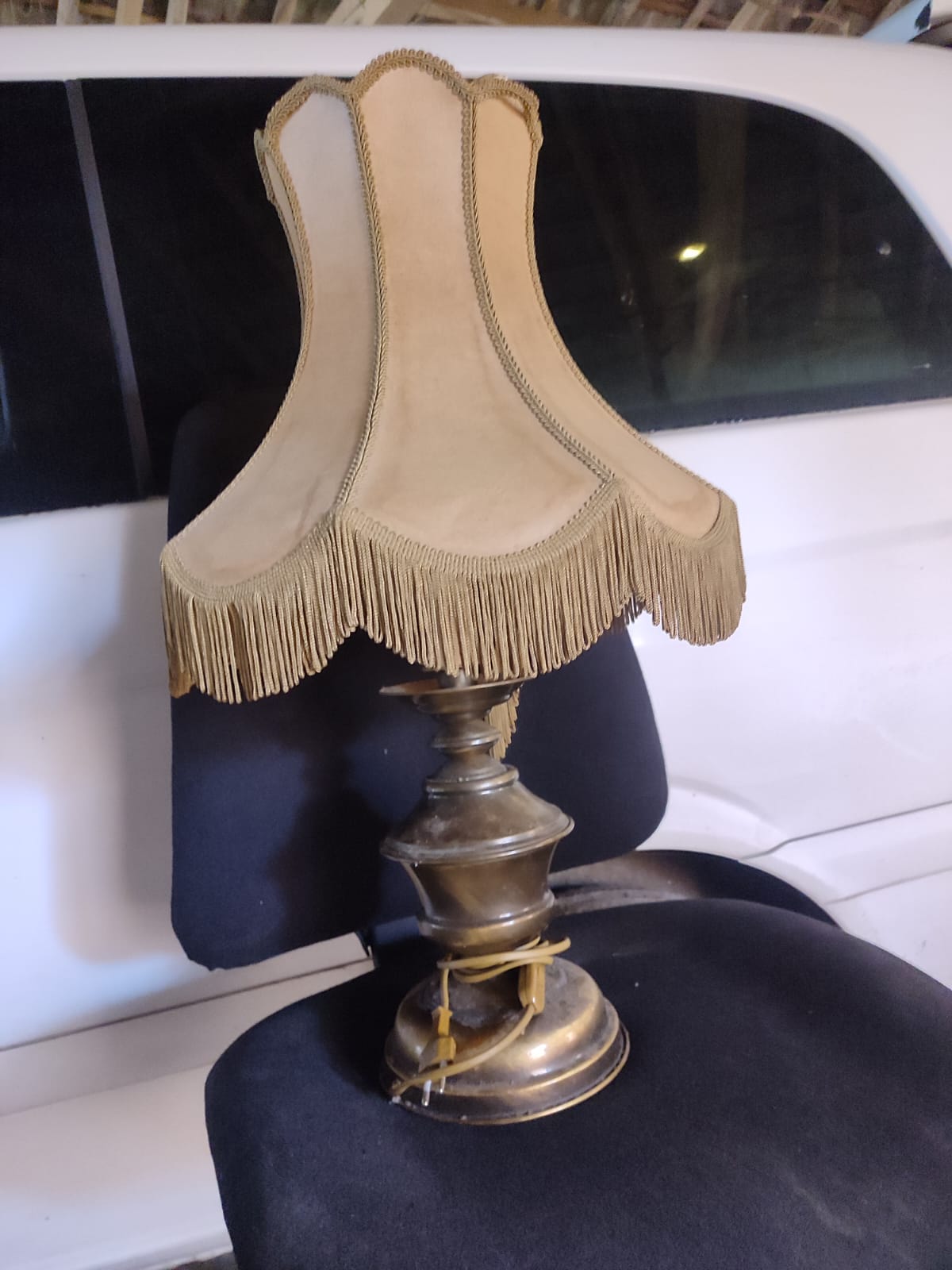 Candeeiro antigo abajur cúpula de tecido e franjas
