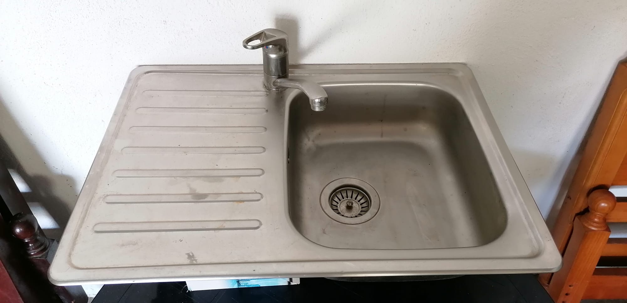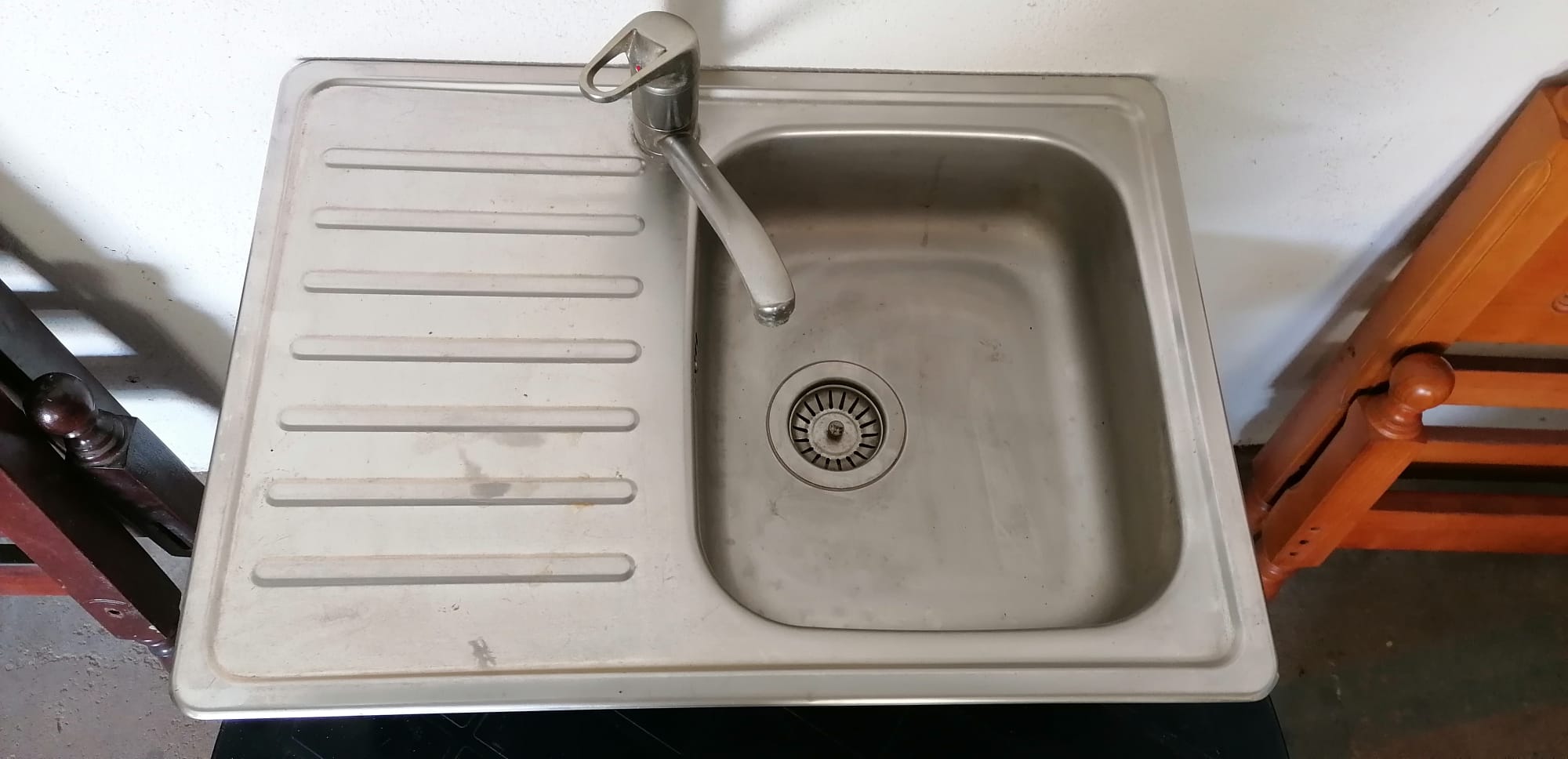 Lavatório em alumínio com torneira e tubagens Medidas 70×50 Fundo+-35